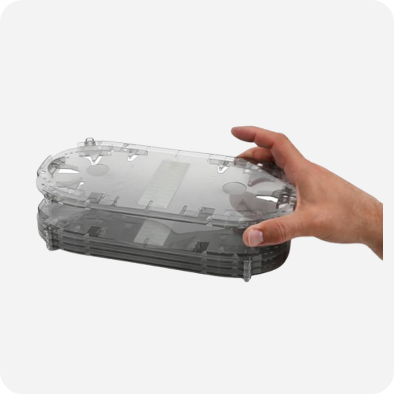 - LightVerse 熔接盒採用兩層設計,其中帶有可拆卸分離托盤的集成存儲迴路使用戶能夠輕鬆管理光纖連接。可堆疊的熔接晶片支持大規模熔接和單熔接,為使用者提供了最大的靈活性。