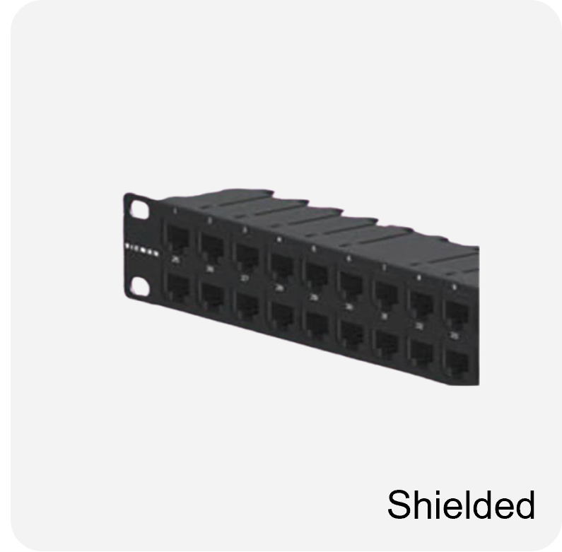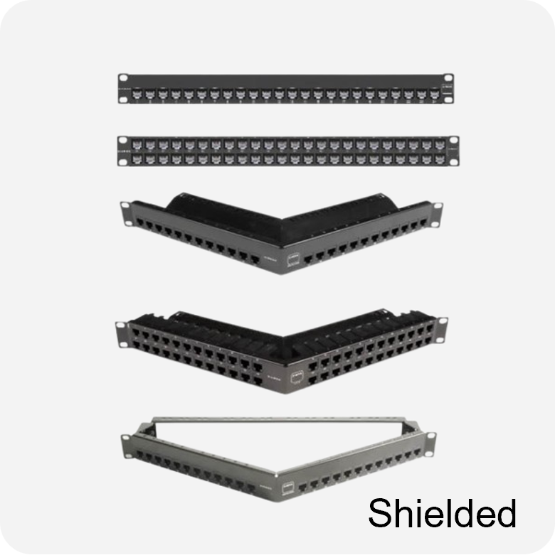 - 這種完整的遮罩解決方案提供了對外部干擾的最大保護和卓越的外來串擾抑制。面板提供平面和傾斜樣式,帶有固定或可拆卸的後部電纜管理器。